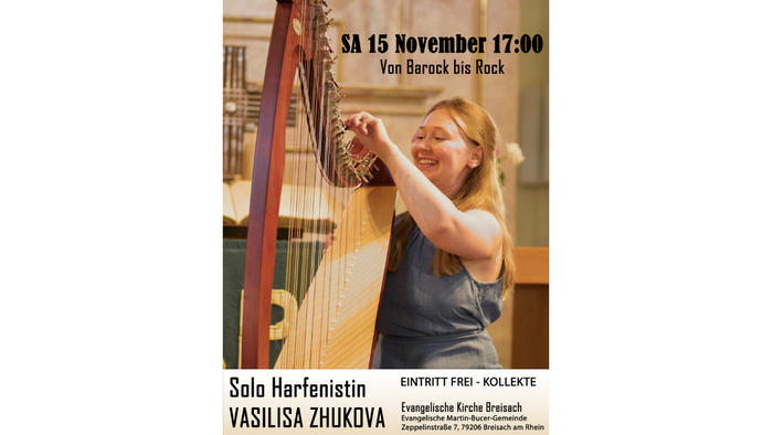 Für einen musikalischen Lichtblick in der dunklen Jahreszeit sorgt die Soloharfenistin Vasilisa Zhukova am Samstag, 15. November, um 17 Uhr in der Martin-Bucer-Kirche.